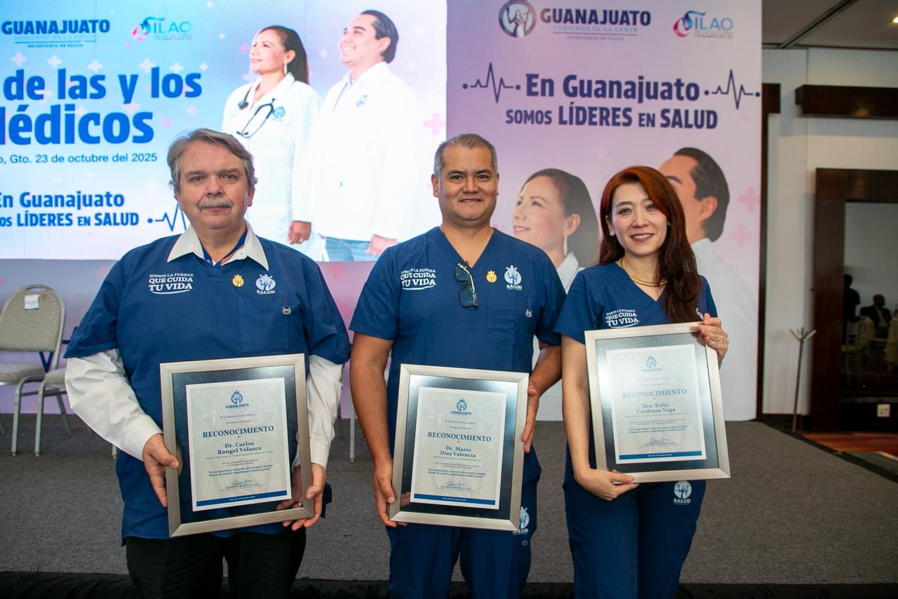 Por su parte, el secretario de Salud, Gabriel Cortés Alcalá, reconoció el papel de las y los médicos como “la columna vertebral del sistema estatal”, destacando que su vocación y pasión por servir son el motor que sostiene la salud en Guanajuato.