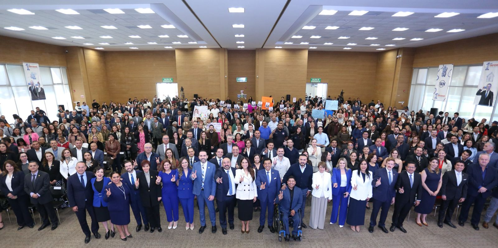 En el informe participaron representantes de los tres poderes del estado, autoridades municipales, miembros de la sociedad civil y familias de distintas comunidades que acudieron para escuchar los avances del primer año de trabajo de la bancada panista.